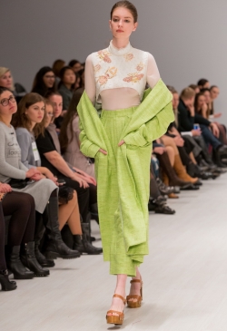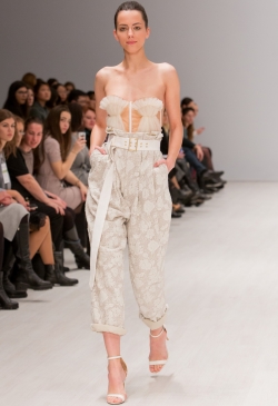 В сочетании фэшн-шоу и инсталляции он очаровал публику своей игривой, но в то же время романтической коллекцией, сочетающей женственность и элегантность. Классические вырезы и пастельные цвета, которые можно увидеть во всей коллекции, встречаются здесь для удобства и прозрачности,.