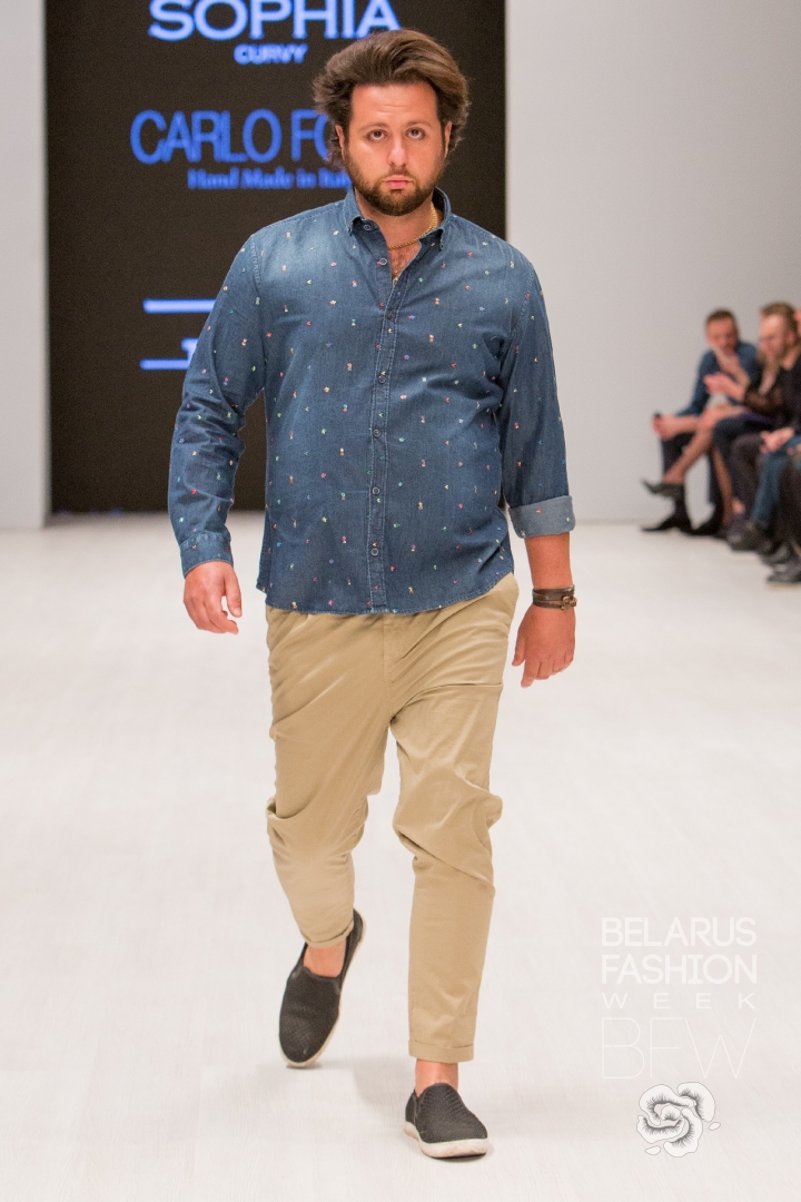 «Удобная одежда для реальных людей» - лейтмотив объединенного показа Max Fort (мужская одежда plus size) и Sophia (женская одежда). Свитшоты, худи, свободные брюки, футболки, блузы – все изделия коллекций могут стать отличным дополнением casual- гардероба современных жителей мегаполиса. Учитывая тот факт, что одежда вышеуказанных брендов предназначена для людей широкого размерного ряда, крой выбран дизайнерами с оглядкой на особенности нестандартных фигур. Дополняли образы головные уборы ручной работы Carlo Forti, кожаные сумки премиум - класса Marino Orlandi и обувь Jackal Milano. Что касается обуви, то стиль унисекс и утилитарность моделей расширили круг потенциальных покупателей.